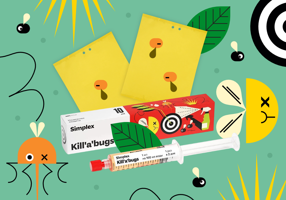 В «Килабакс» (Kill'a'bugs) мы пошли по пути комплексного подхода. Теперь в комплекте с препаратом есть жёлтые липучки-ловушки для насекомых.